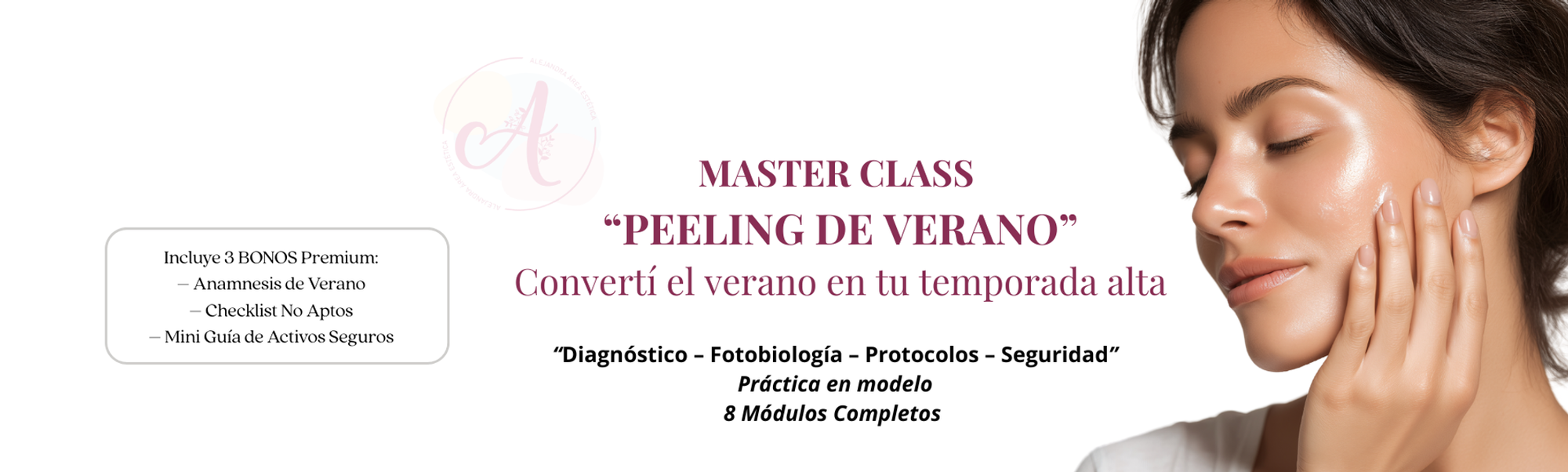 Esta masterclass está diseñada para profesionales que quieren ofrecer peeling incluso en temporada de calor, sin riesgos, sin dudas y con diagnóstico profesional real.